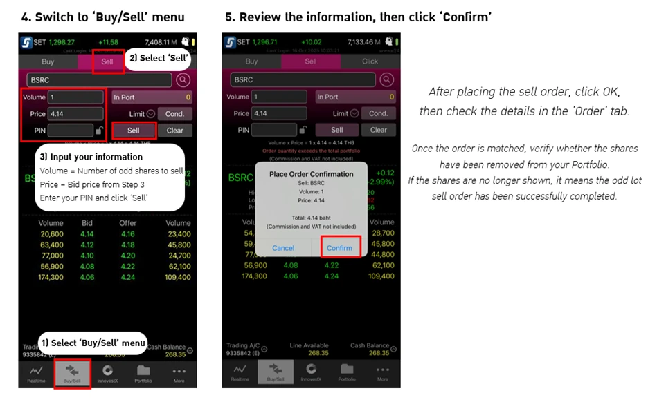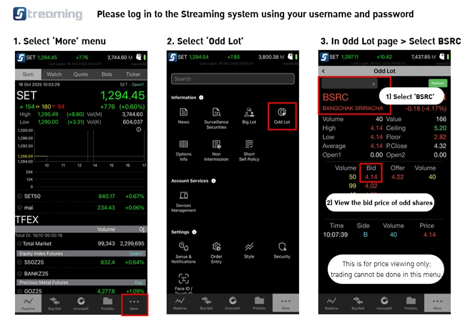 - BSRC Shareholders may contact their brokerage company to inquire about procedures for managing fractional shares, e.g. sell BSRC shares through the Odd Lot board (ceasing to be a BSRC shareholder) or purchase additional BSRC shares through the SET or the Odd Lot board to reach the minimum threshold required for participating in the tender offer and share swap with BCP.